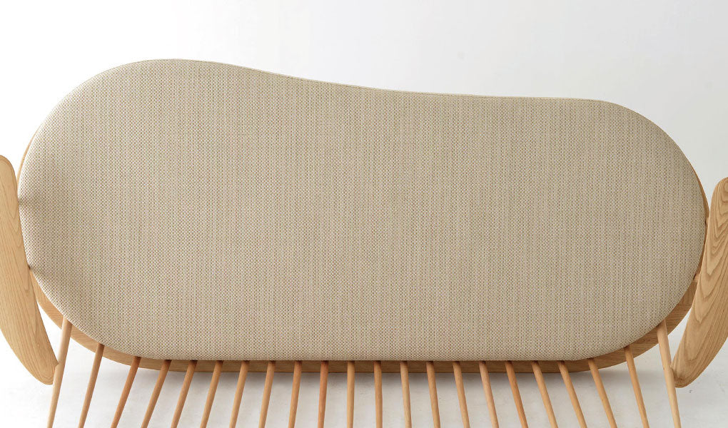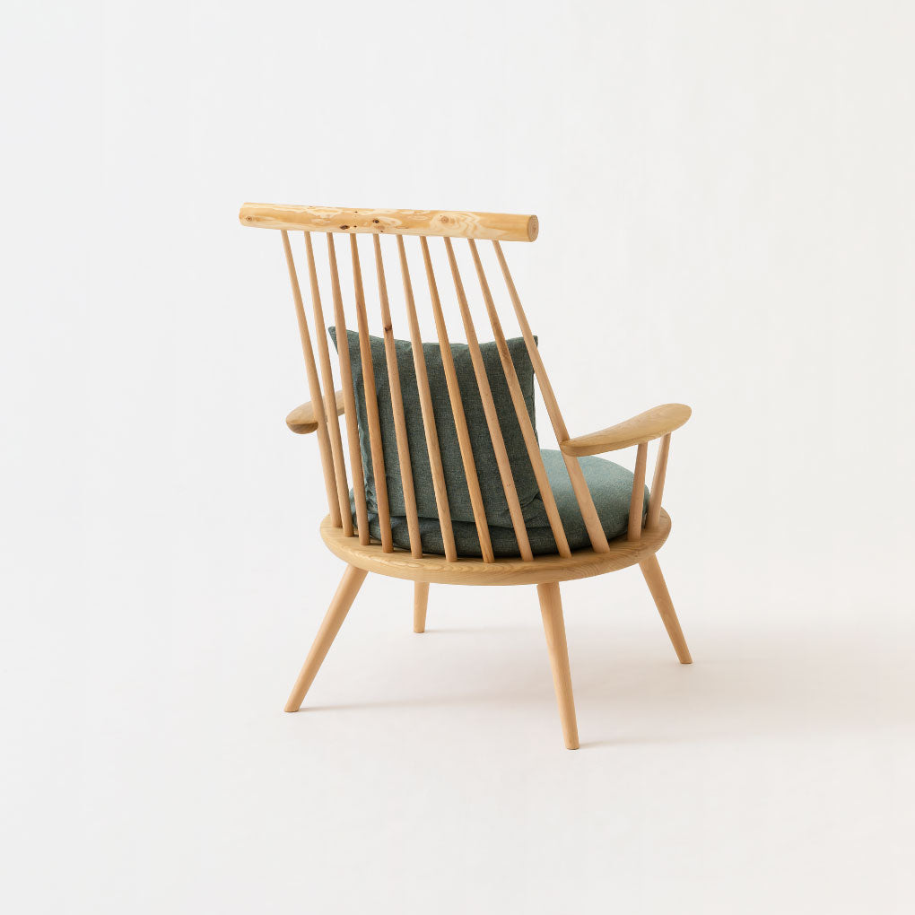 此外,應用飛驒高山傳統的曲木工藝,加溫高壓的彎曲樹枝,使得笠木適應椅背曲線,能夠輕巧的撐托身形、擁抱著背部。